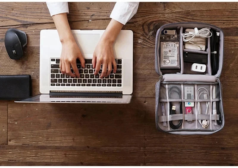 💼 Portable & Convenient: Handy for both home and travel use—store chargers, earphones, adapters, or other small gadgets efficiently.